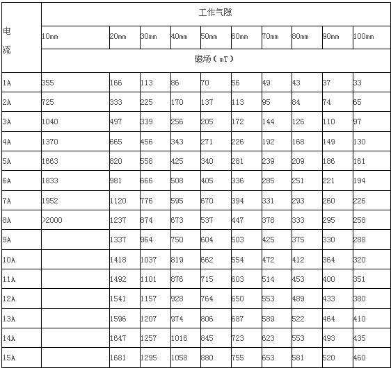 2.4、最大磁場(chǎng) :H>2T, 工作氣隙10mm時(shí)